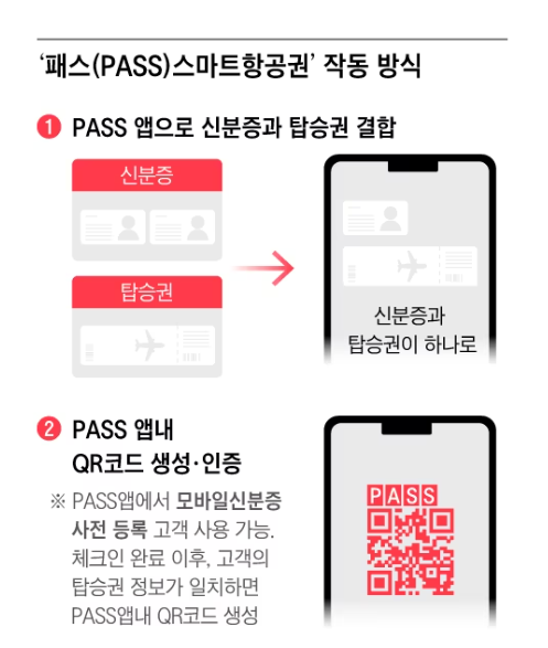 - PASS 스마트항공권은 PASS 앱 내에서 모바일신분증과 국내선 탑승권을 결합한 QR코드를 생성하고 이용객들은 비행기 탑승 과정에서 이를 제시하면 됩니다.